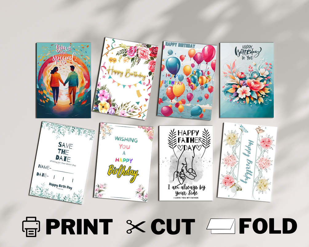 (A) Simply print our greeting cards on quality paper, then cut and fold along the marked lines. Personalize with your handwritten message for a heartfelt touch!
