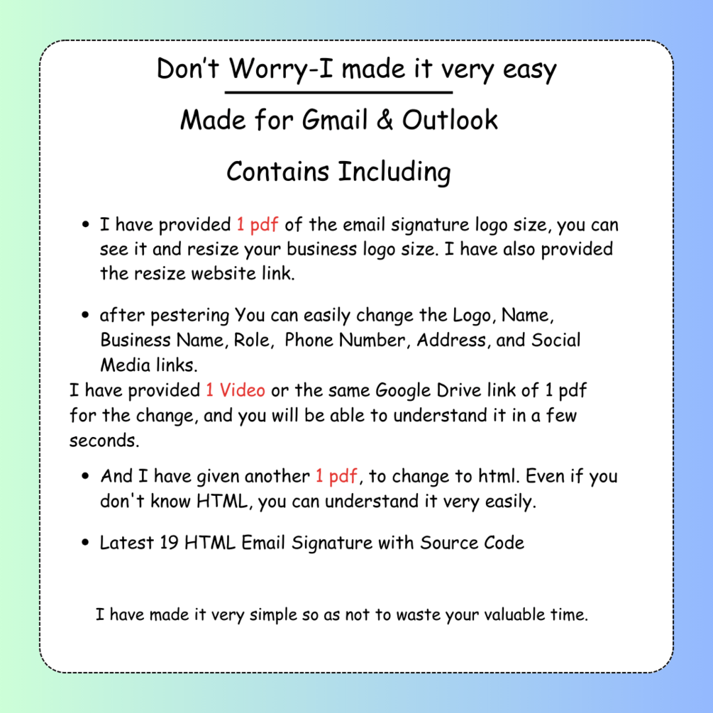 - - How to make changes to HTML email signature Gmail and Outlook if you have 1 Video or the same Google Drive link of 1 pdf