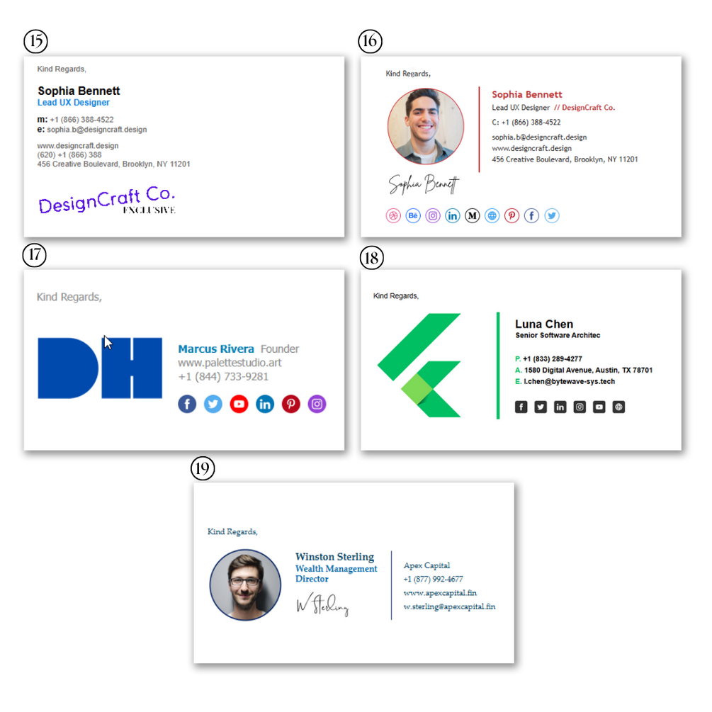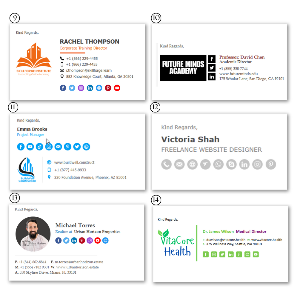 All signatures include source code and are ready for immediate use. "Even if you have no knowledge of HTML code, you can use these templates in your email signature."