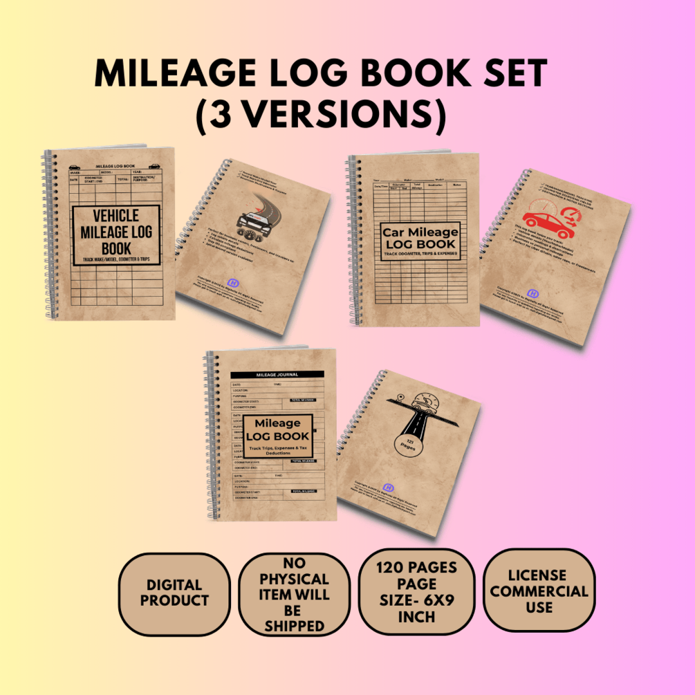 Stay organized and keep accurate records of all your vehicle mileage with this complete Mileage Log Book Set. Perfect for business owners, freelancers, delivery drivers, and anyone who needs to track mileage for tax deductions or reimbursements. This set includes 3 different log formats in one convenient package, giving you 120 pages to record your trips throughout the year.
